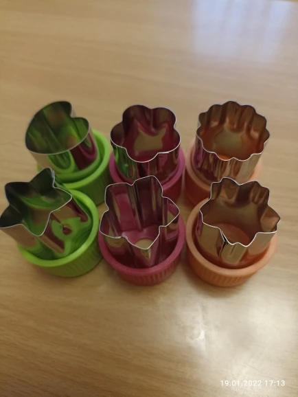 Описание:Этот трафарет для овощей из нержавеющей стали поможет вам сделать украшение блюда удобно, сделает вашу еду более красивой.Форма фруктов из нержавеющей стали для нарезки используется для долгое время и удобно мыть.Трафарет для фруктов из нержавеющей стали имеет нескользящую пластиковую ручку, легко нажимается и не причиняет вреда вашим рукам.В одном наборе есть 3 формы для нарезки фруктов, поэтому вы можете использовать их для удовлетворения ваших потребностей.Форма для нарезки фруктов подходит для домашней кухни, ресторана и т. д., маленькая, компактная, портативная, удобная в хранении.Спецификация:Материал: АБС + нержавеющая сталь.Цвет: как на картинке.Размер: 32x48 мм.ПримечаниеИз–за разных компьютерных разрешений может быть небольшое цветовое искажение.Возможны небольшие погрешности из-за разных измерений вручную.Посылка3 формы для нарезки фруктов.
