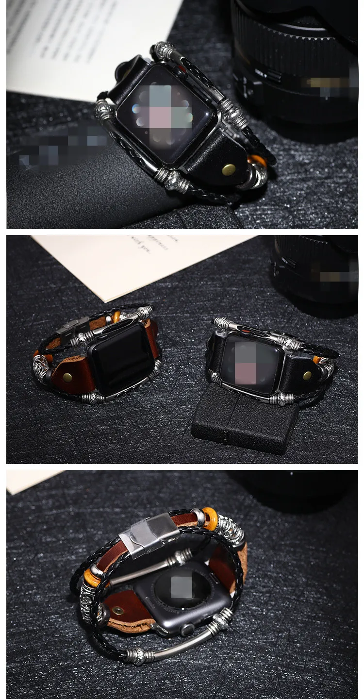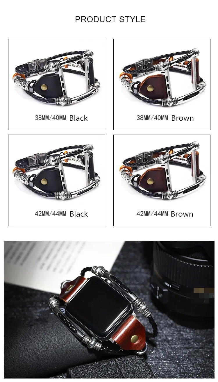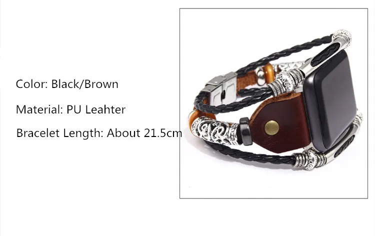 DIY винтажный ремешок для часов из искусственной кожи для Apple Watch серии 5/4/3 плетеный браслет с бусинами ремешок для часов для iphone 40 мм 42 мм 44 мм