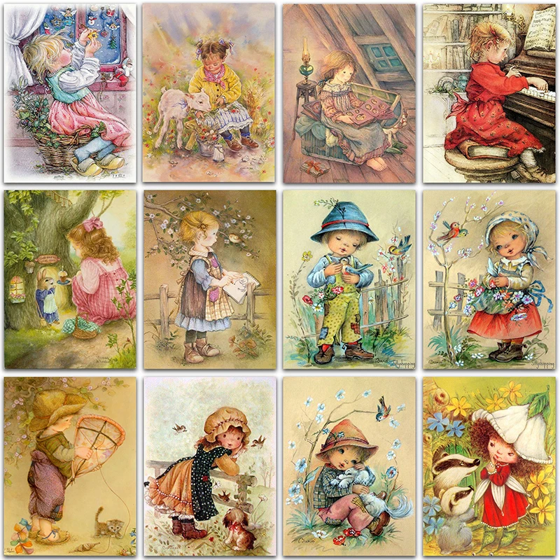 Набор для алмазной вышивки 5D, мультяшная маленькая девочка мальчик...