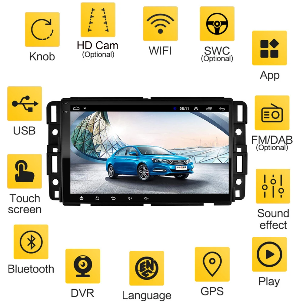 Android 2 Din GPS радио Автомобильный плеер для GMC 2007-2012 Sierra Yukon Denali Acadia Savana Chevrolet Express Traverse Equinox No DVD