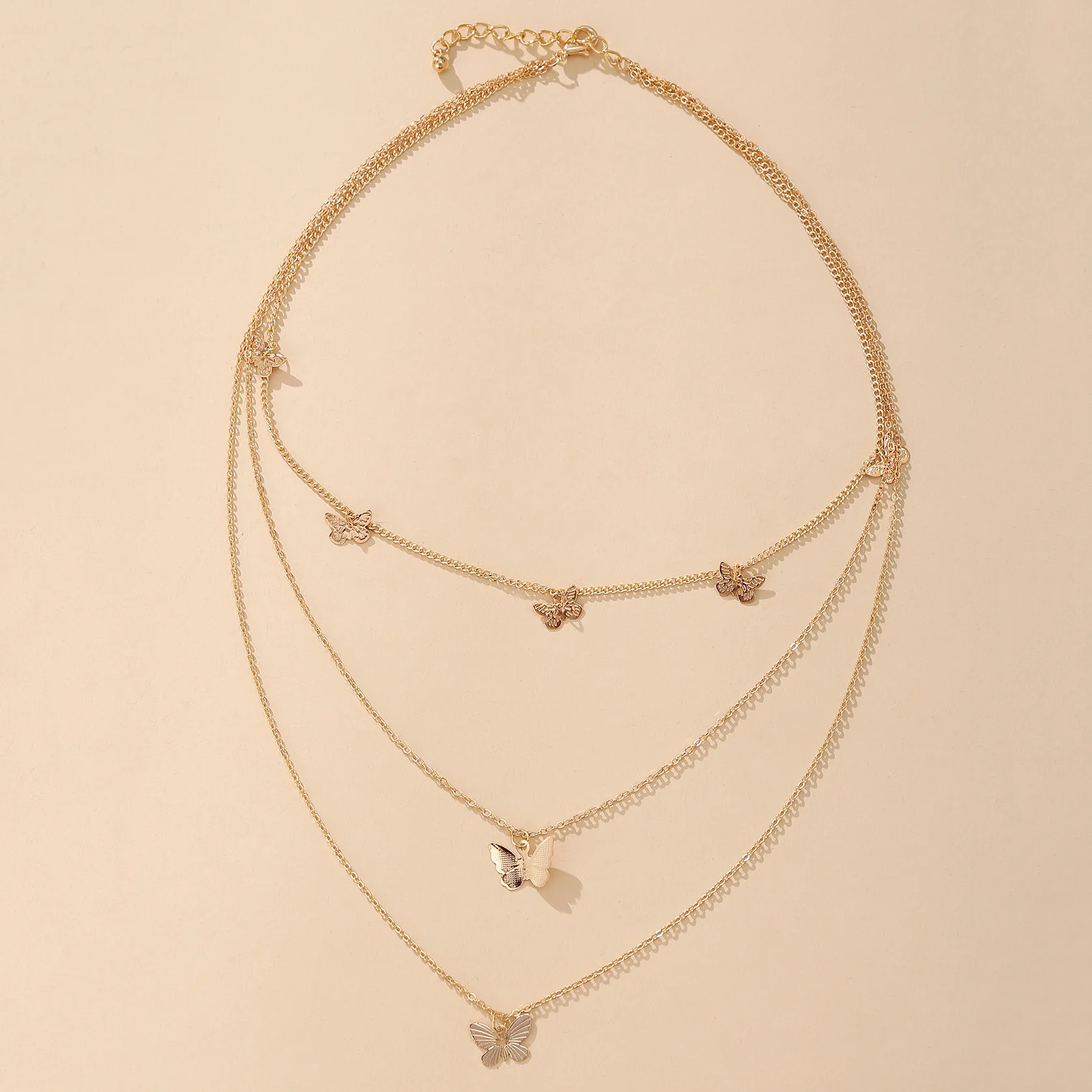 Женское многослойное ожерелье с подвеской-бабочкой, винтажное ожере...