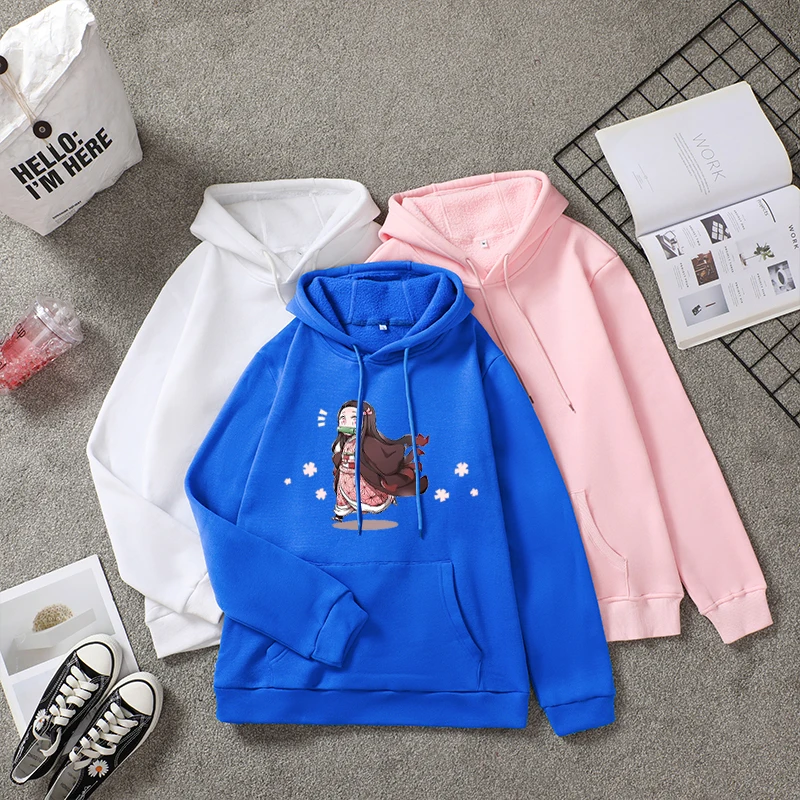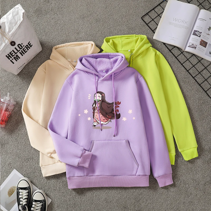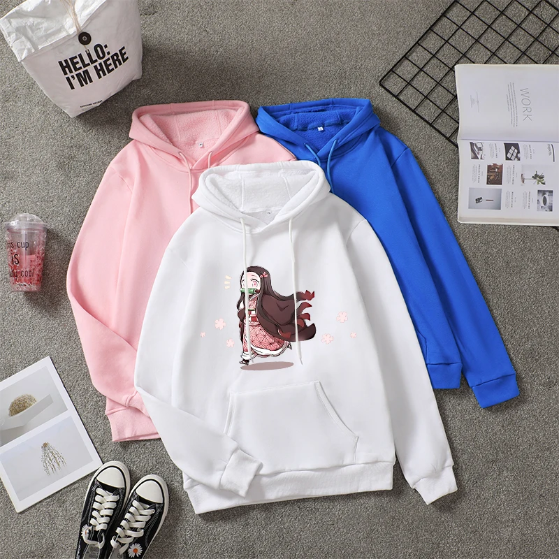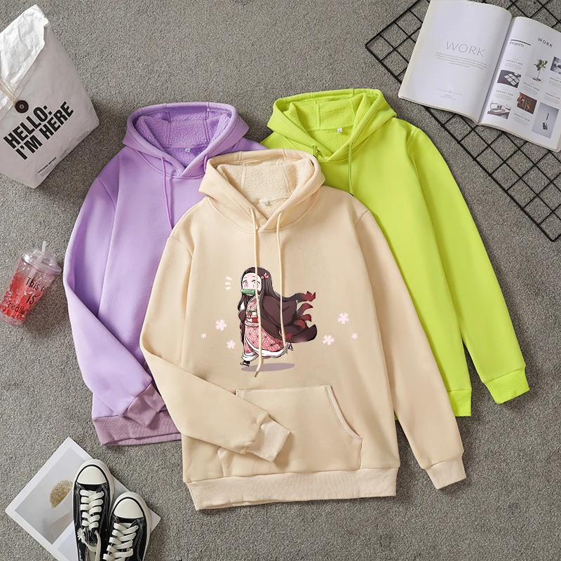 Толстовка Kamado Nezuko Demon Slayer Женская, свитшот с милым аниме принтом, пуловер в стиле оверсайз, уличная одежда в стиле Харадзюку, зимнее худи
