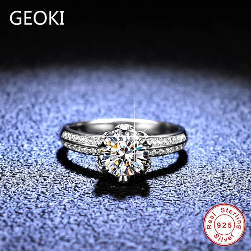 Geoki 925 пробы Серебряный Круглый Идеальный вырез 1 CT D Цвет VVS1 Муассанит PT950 кольцо со штампом прошедший Алмазный тест Камень Обручальное кольцо