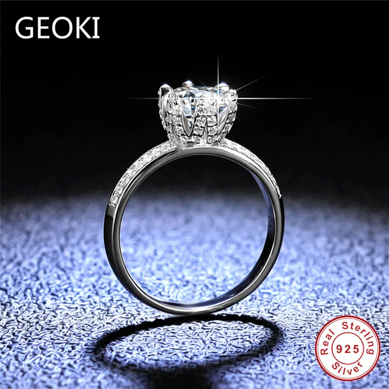 Женское кольцо с короной моссанита Geoki, обручальное кольцо с алма...