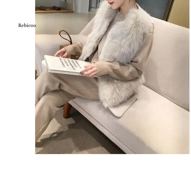 Осень-зима 2021, женский модный жилет из искусственного лисьего мех...