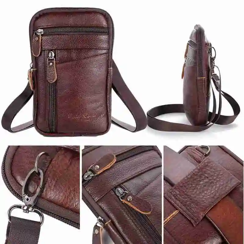 1 шт. многофункциональная повседневная мужская кожаная сумка для телефона, модная поясная сумка на молнии с защитой от кражи, кошелек из искусственной кожи, сумка через плечо