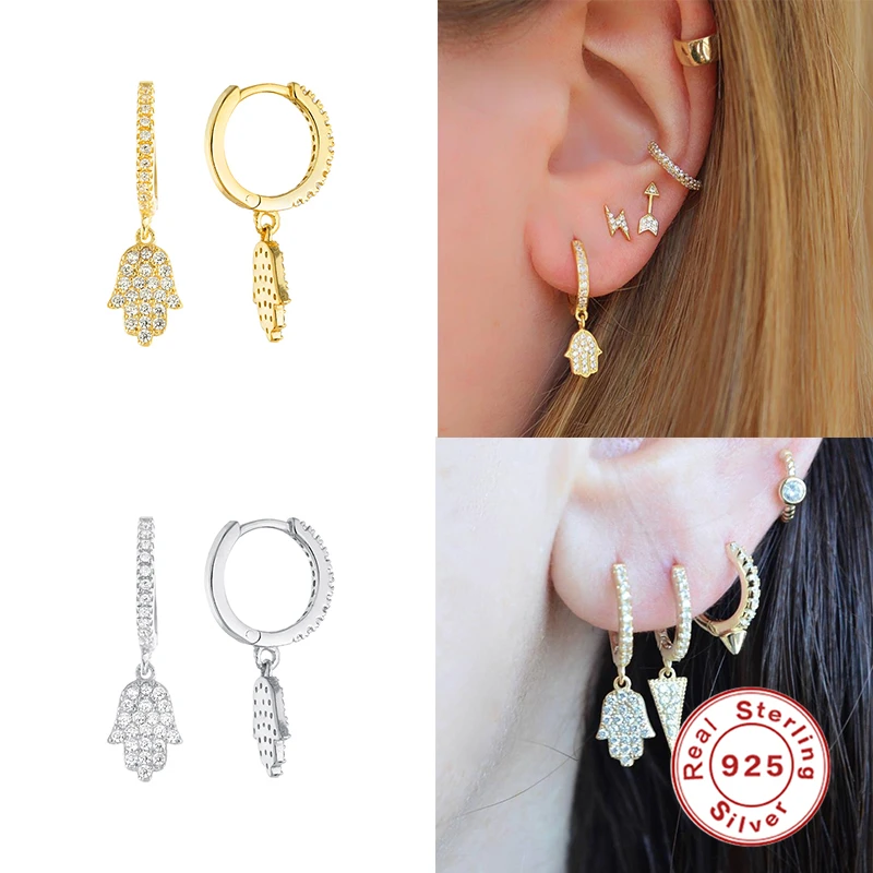 Aide 925 Стерлинговое Серебро Блестящий Прозрачный Циркон Палм-пчела Подвеска Серьги-кольца для женщин и девочек с клипсами Дурной глаз круг вечерние серьги