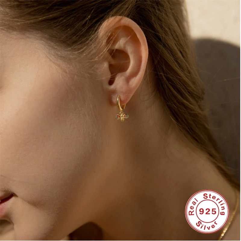 Однотонные 925 пробы серебряные серьги с милыми животными пчела Роскошные серьги-кольца с фианитами для женщин влюбленных пар