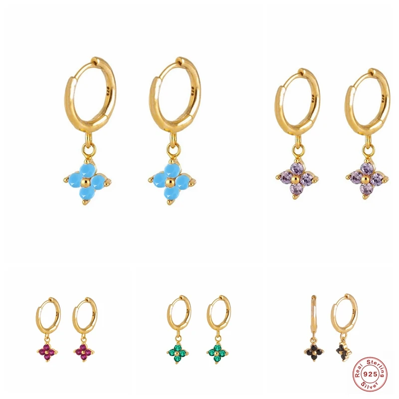 Серьги-кольца женские из серебра 925 пробы с разноцветными циркониевыми цветами