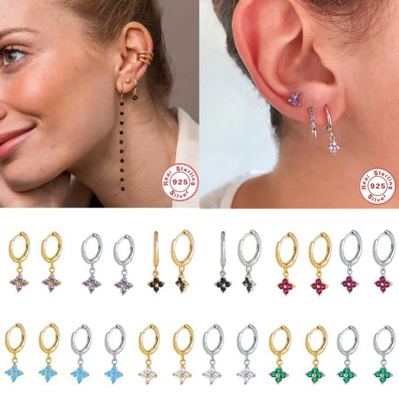 Серьги-кольца из серебра 925 пробы с разноцветным цирконием для влюбленных, подарок на день Святого Валентина, женские серьги-кольца