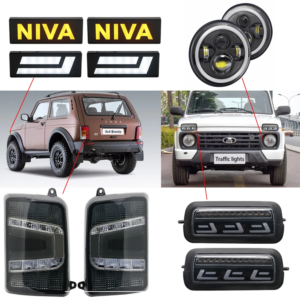 Супер тонкий автомобильный головной светильник 7 ''для Lada Niva 4X4 1995 Светодиодный дневной ходовой тюнинг освещения светильник s задний светильник дым/красный с кронштейнами