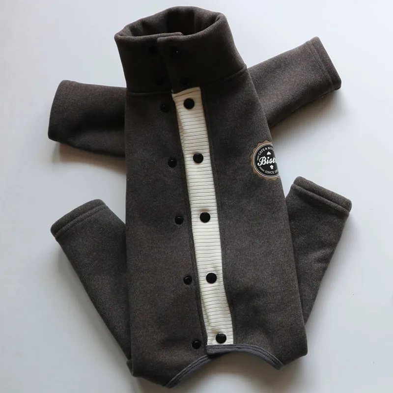 Комбезик из плотного трикотажа, можно застегнуть поуже, пошире. Очень удобно.Внутри мягкий начёс . Спасибо.