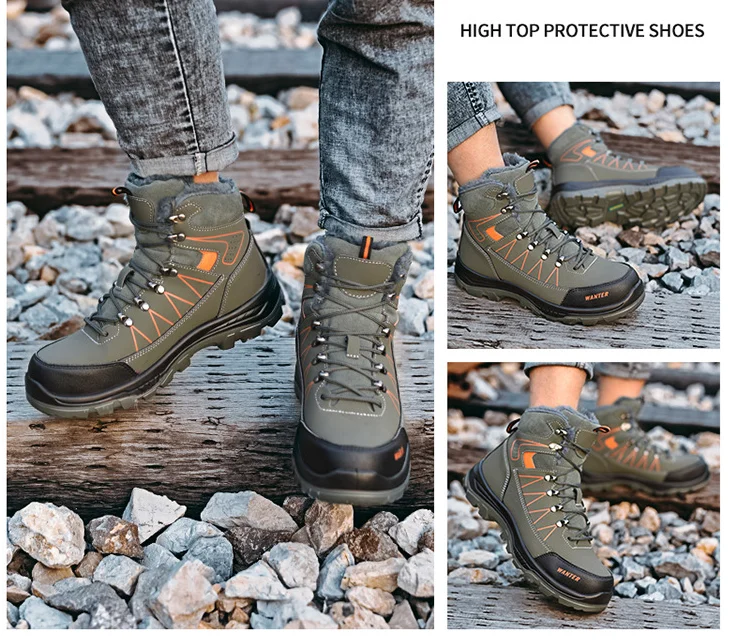 Зимние ботинки, Мужская Рабочая защитная обувь, непромокаемые ботинки со стальным носком, Нескользящие теплые военные тактические ботинки