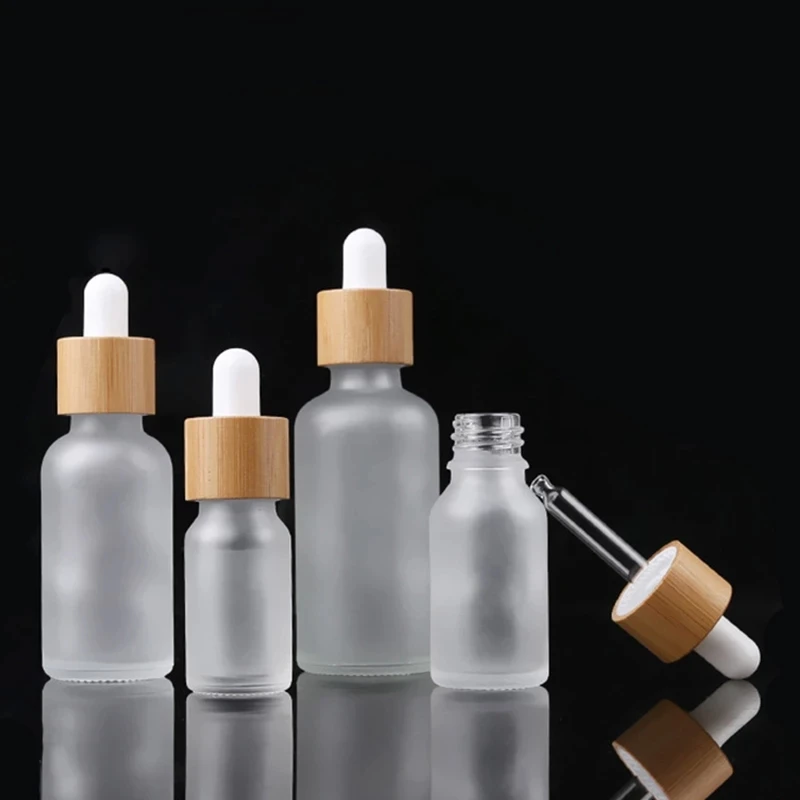 Бутылочки-капельницы стеклянные для эфирных масел, 5 мл, 10 мл, 15 мл, 30 мл, 50 мл, 100 мл, Бамбуковая крышка, реагент, Пипетка для жидкости