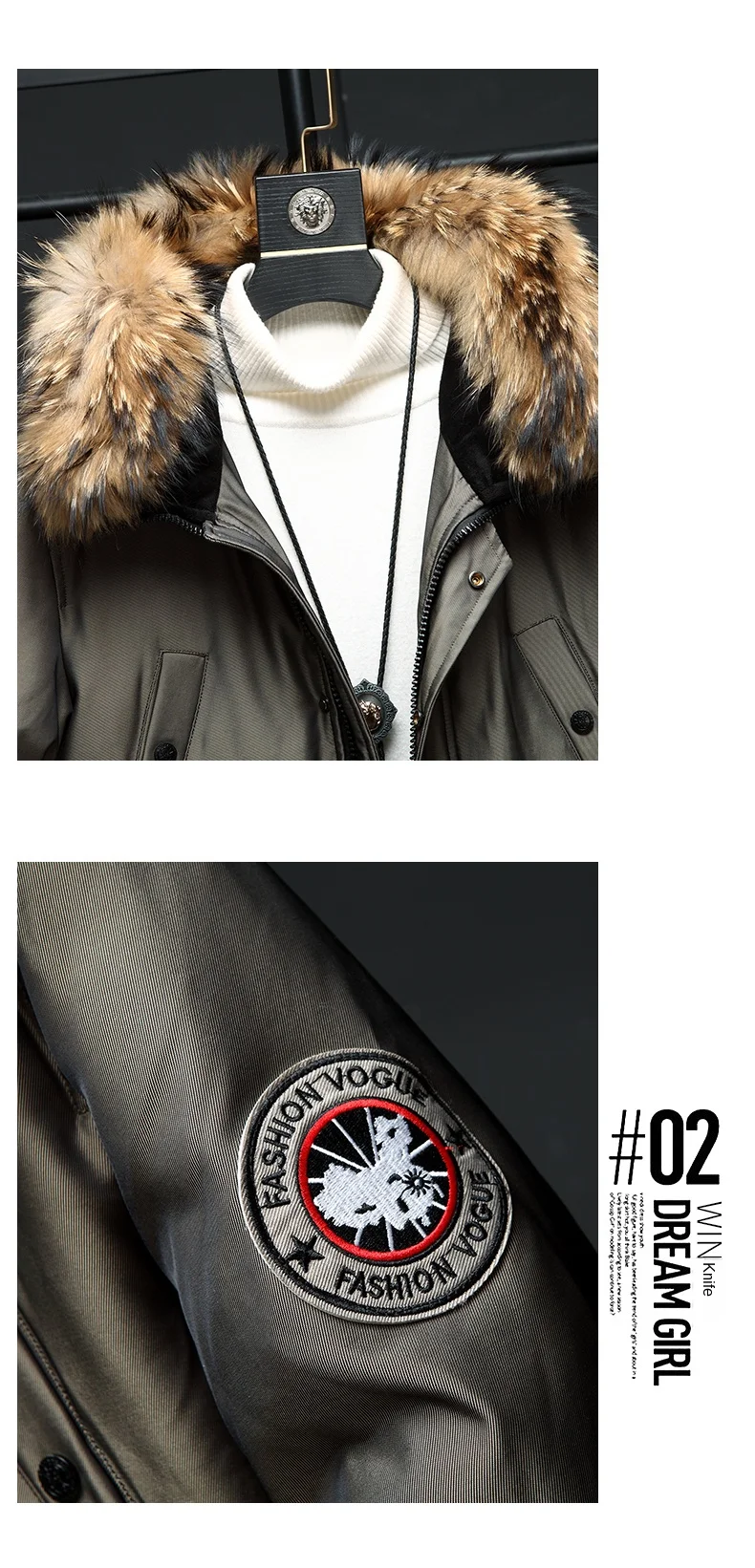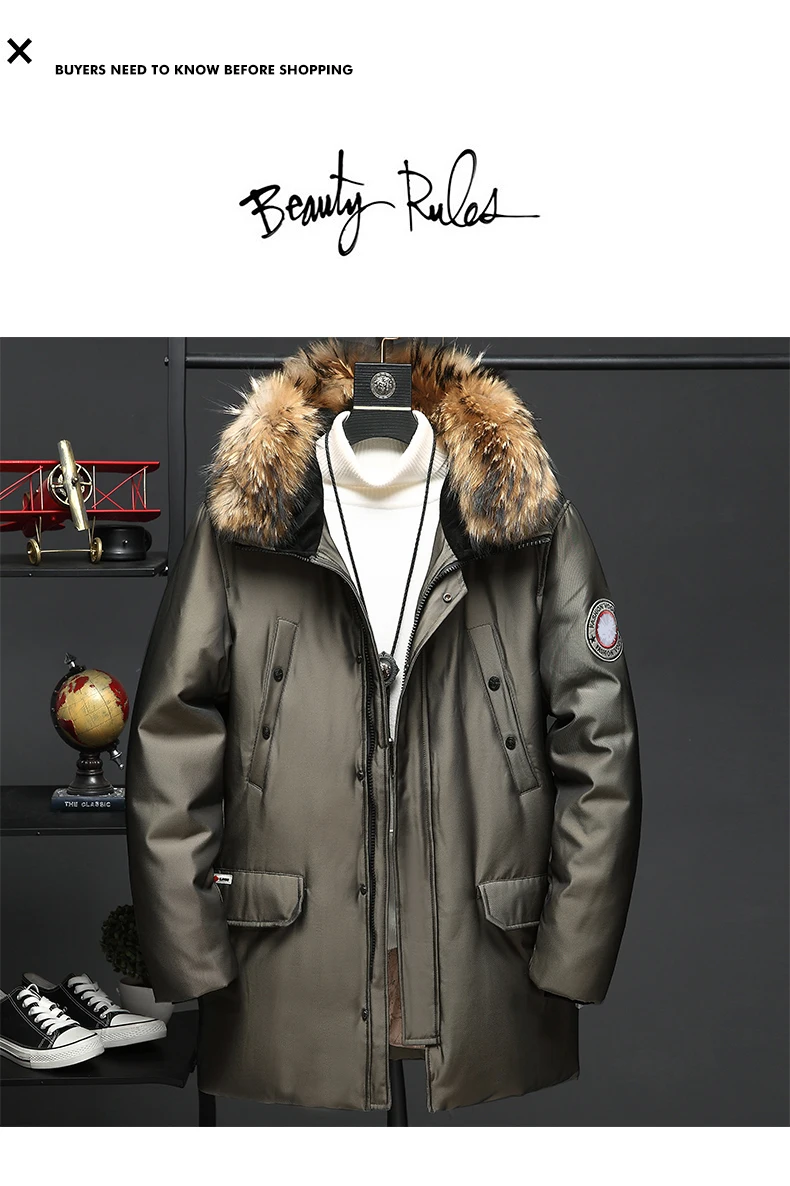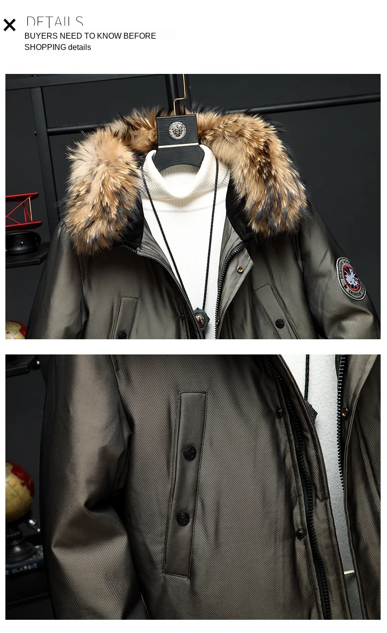 Мужской пуховик с большим настоящим воротником, теплая Повседневная...