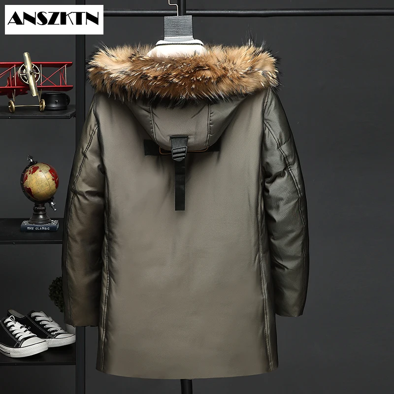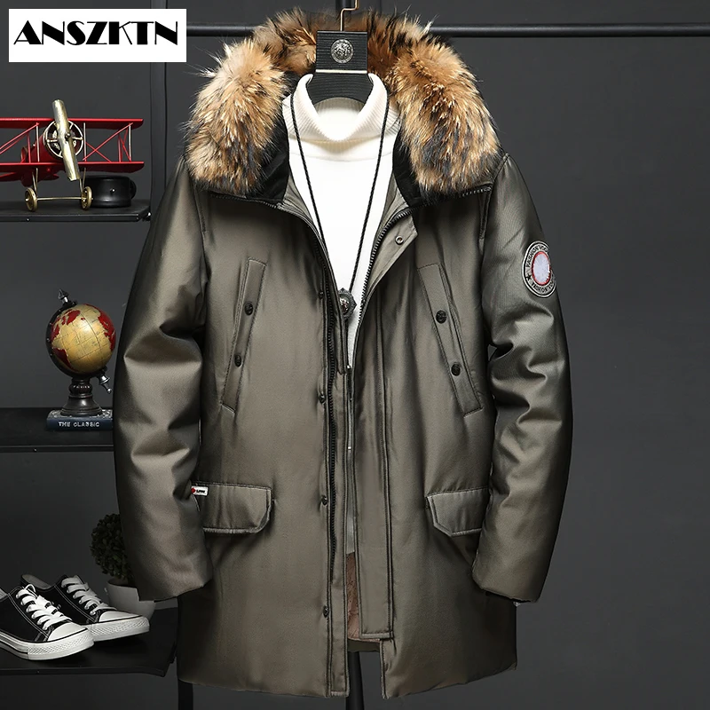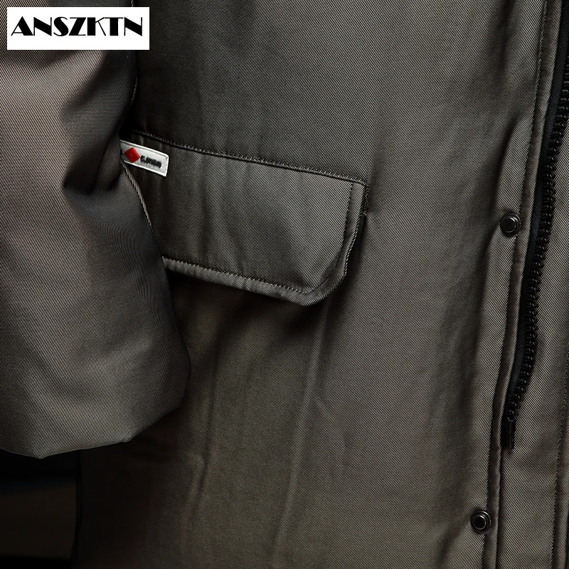 Зимний пуховик ANSZKTN цвета хаки, кардиган с утолщенными пуговицами и карманами, повседневный белый утиный пуховик для мужчин