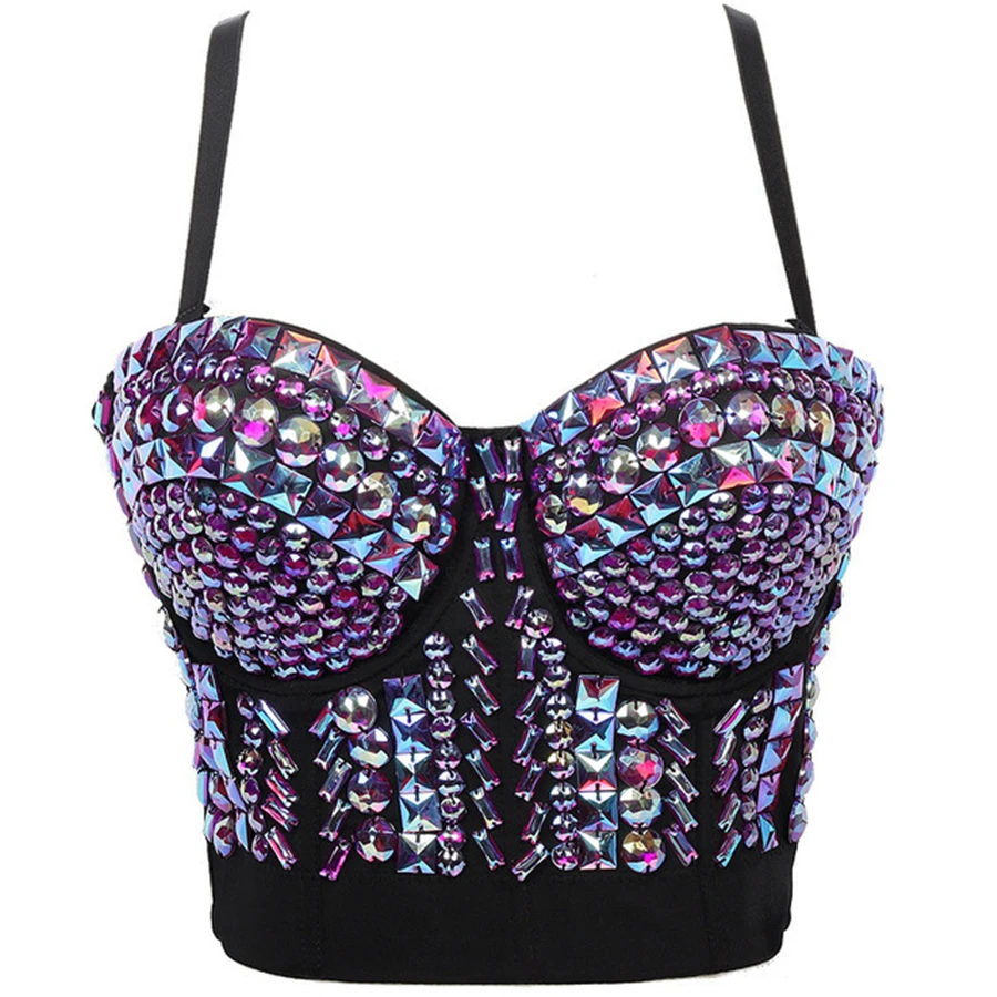 Женский укороченный топ с чашками пуш-ап и акриловым блеском