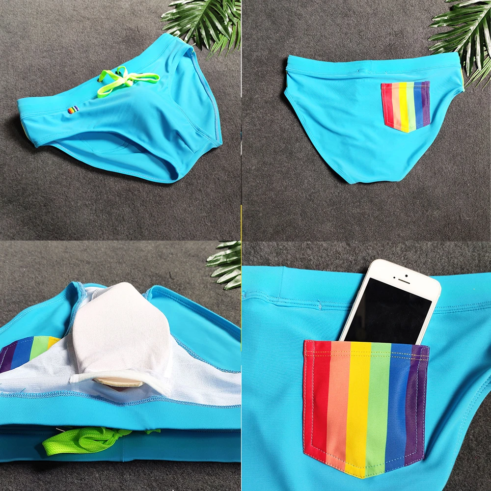 С принтом радуги треугольные плавки для мужчин сексуальные пуш-ап п...