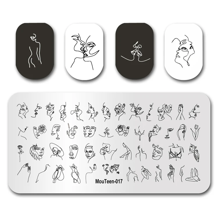 Новейший штамп для ногтей MouTeen030, леди, лицо, растения, штампов...