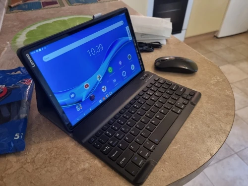 Клавиатура отличная, подключается без проблем, мышка с тихими клавишами, есть usb-приемник, для подключения к компьютеру. Чехол обычный, есть резинка - держатель для стилуса. Доставка 10 дней в постомат. Кому надо русские символы, после оплаты заказа пишите продавцу, что вам нужны русские символы.