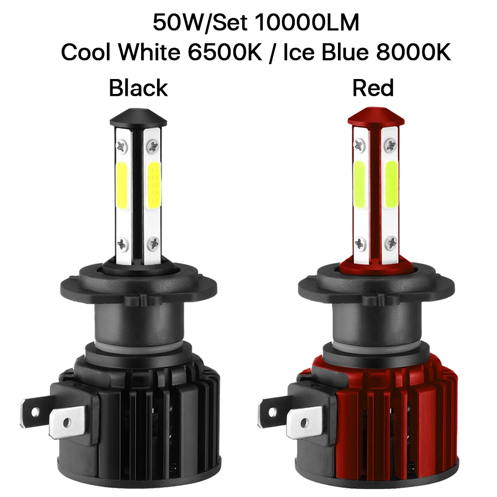 Автомобильная светодиодная лампа H7 H11 H8 HB4 HB3 9005 9006, 4 стороны, COB 6500 лм, 50 Вт, легкая в установке, 8000K, белая, K