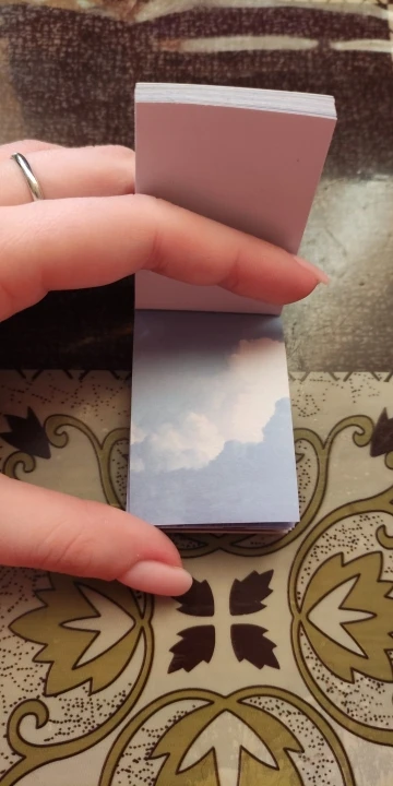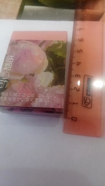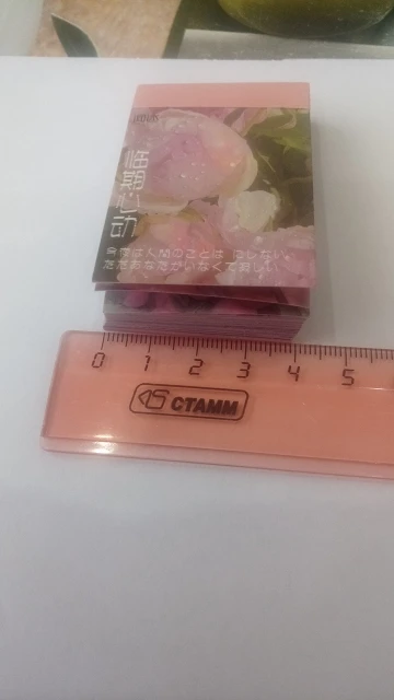 товаром очень довольна, все пришло быстро, в одной упаковке вместе с другими товарами от этого же продавца. стикеры с приятной бумажной текстурой, клеится все отлично. сама книжечка достаточно прочная, корешок не поврежден. на первом фото разница в размере с маленьким канцелярским ножом.