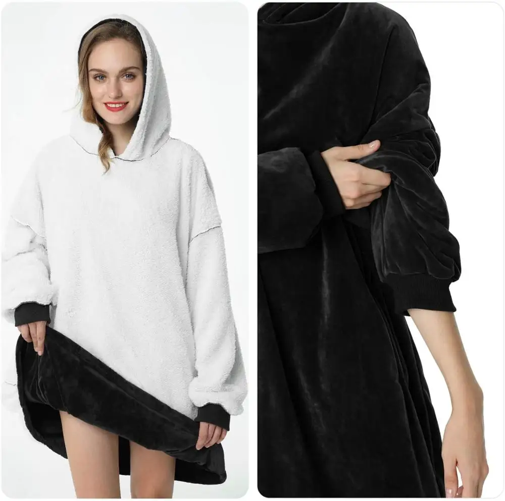 Толстовка с капюшоном, одеяло с рукавами, свитшот, клетчатая зимняя флисовая толстовка с капюшоном, Женский карман, Свитшот оверсайз