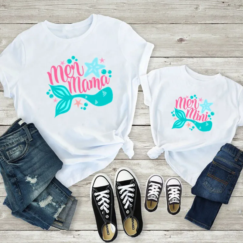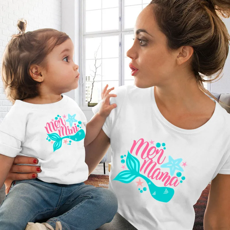 Футболка с коротким рукавом, белая, для мамы и дочки