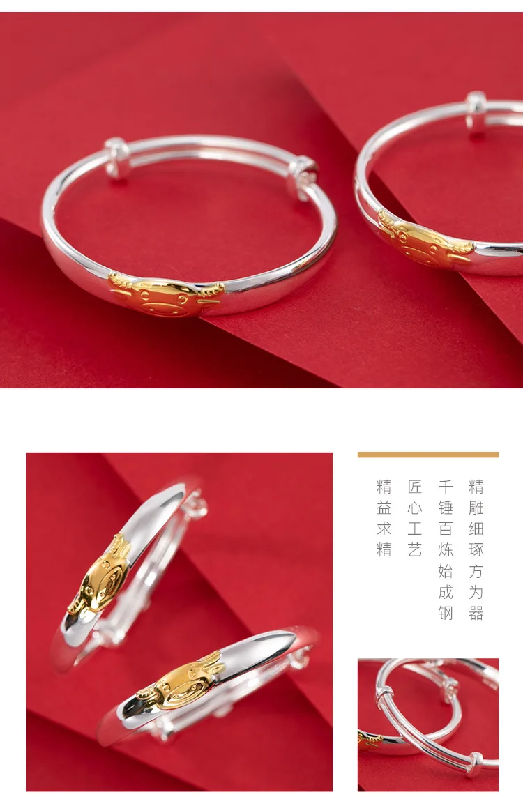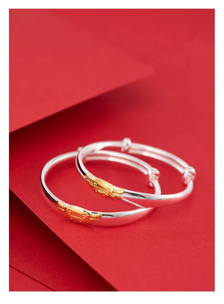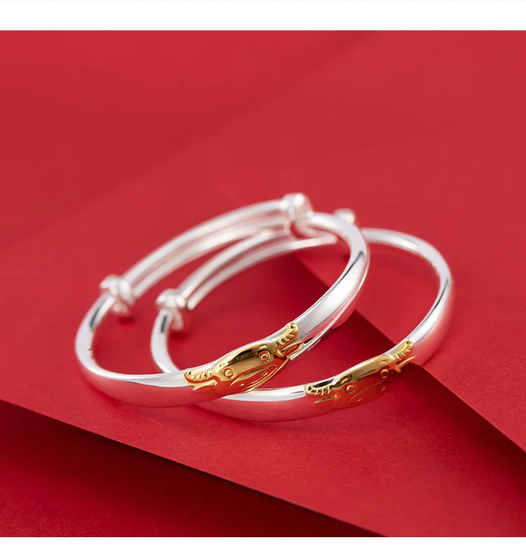 Uglyless год быка ближайшие 1 пара 999 серебристого цвета из коровьей кожи крупного рогатого скота браслеты с животными для новорожденных мальчиков и девочек Глянцевые Серебряные двухтактный браслет