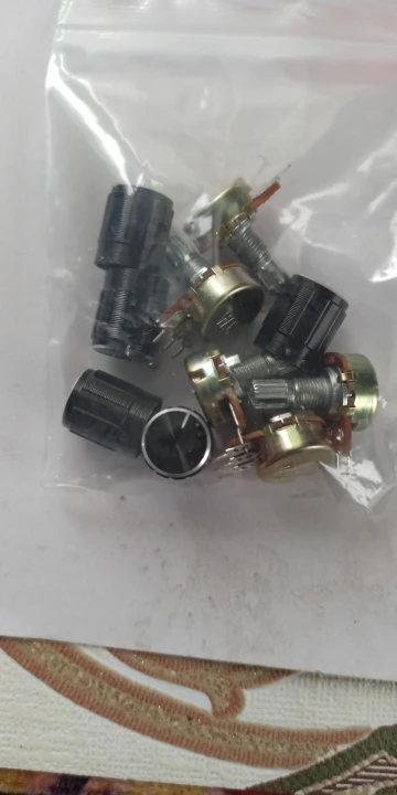 Приехала посылка за 20дней, новой почтой. Комплект 5шт: потенциометры, ручки, гайки и шайбы. Маркировка на 10к. Пока не проверял, позже дополню отзыв. Ручки лучше упаковывать в отдельный пакет, так как они поцарапаны потенциометрами(