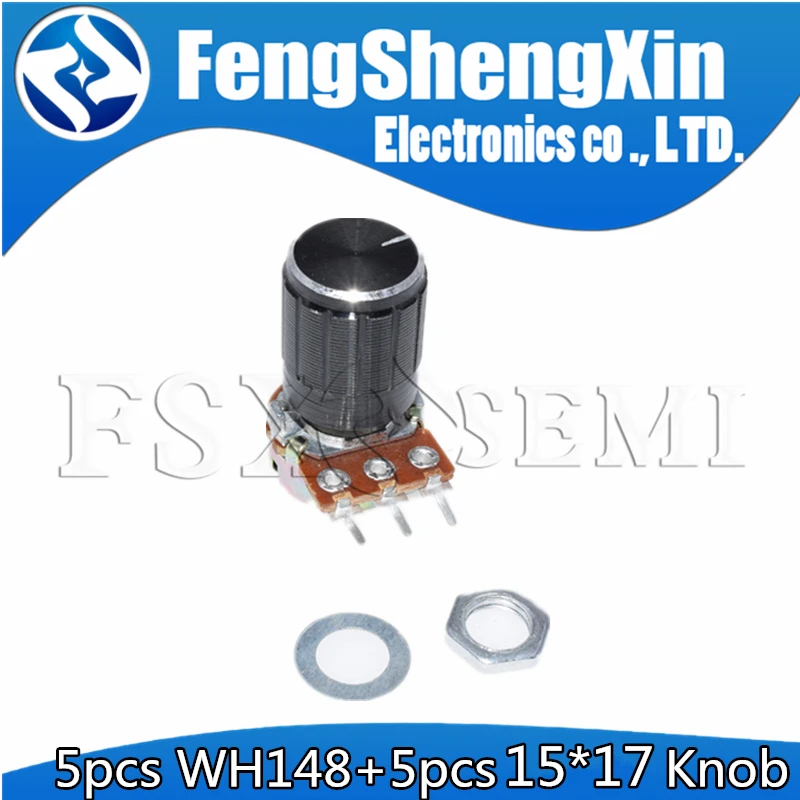 Линейный конический поворотный резистор для Arduino WH148, 1K, 10K, 20K, 50K, 100K, 500K Ом, 15 мм, 3 контакта, с ручкой 15x17, 5 комплектов