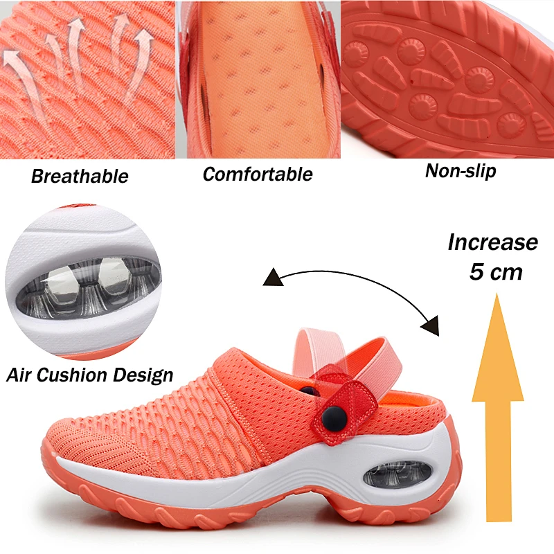 Женские теннисные туфли, дышащие сетчатые, без шнуровки, увеличивающие рост, на воздушной подушке, тапочки для прогулок и бега, женские кроссовки