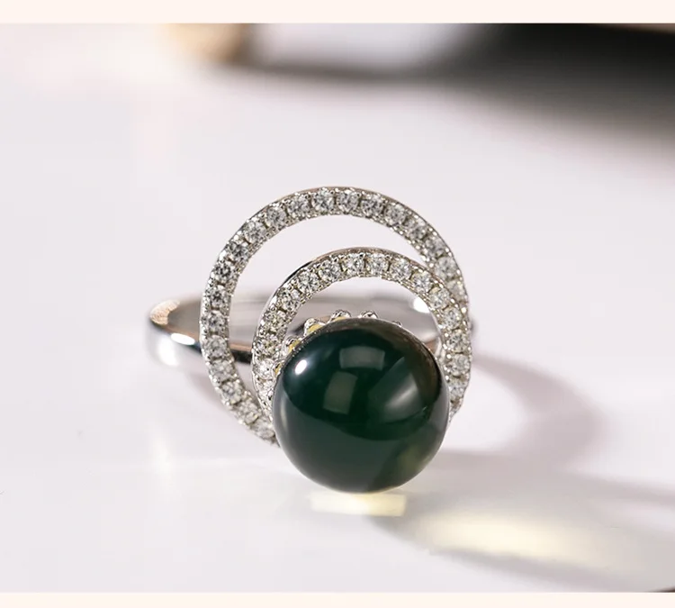Женское кольцо из серебра 925 пробы, с натуральным нефритом
