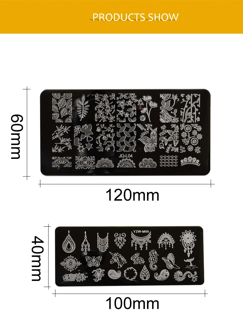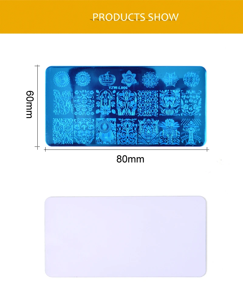 1 шт. 120*60 мм/100*40 мм/56 мм шаблоны тиснения ногтейКак использовать:1) Снимите защитную пленку2) Нанесите лак для ногтей на желаемый дизайн3) удалите излишки лака для ногтей скребком под углом 45 °4) Возьмите дизайн с помощью стемпера с помощью подвижного движения5) Нанесите штамп на ваш ноготь с помощью подвижного движения6) Нанесите верхнее пальто для более длительного результата