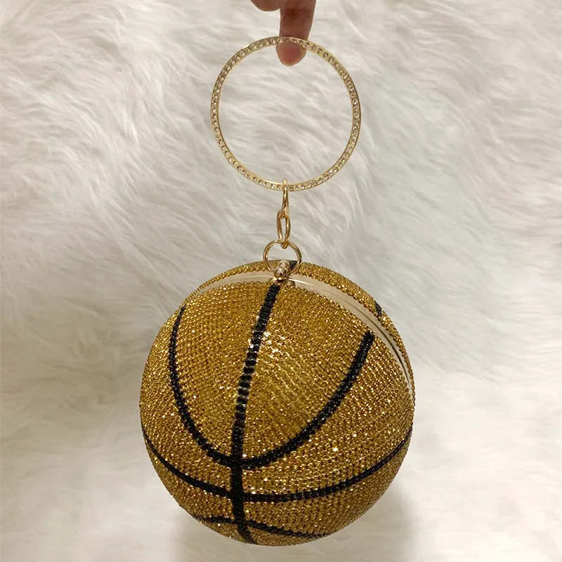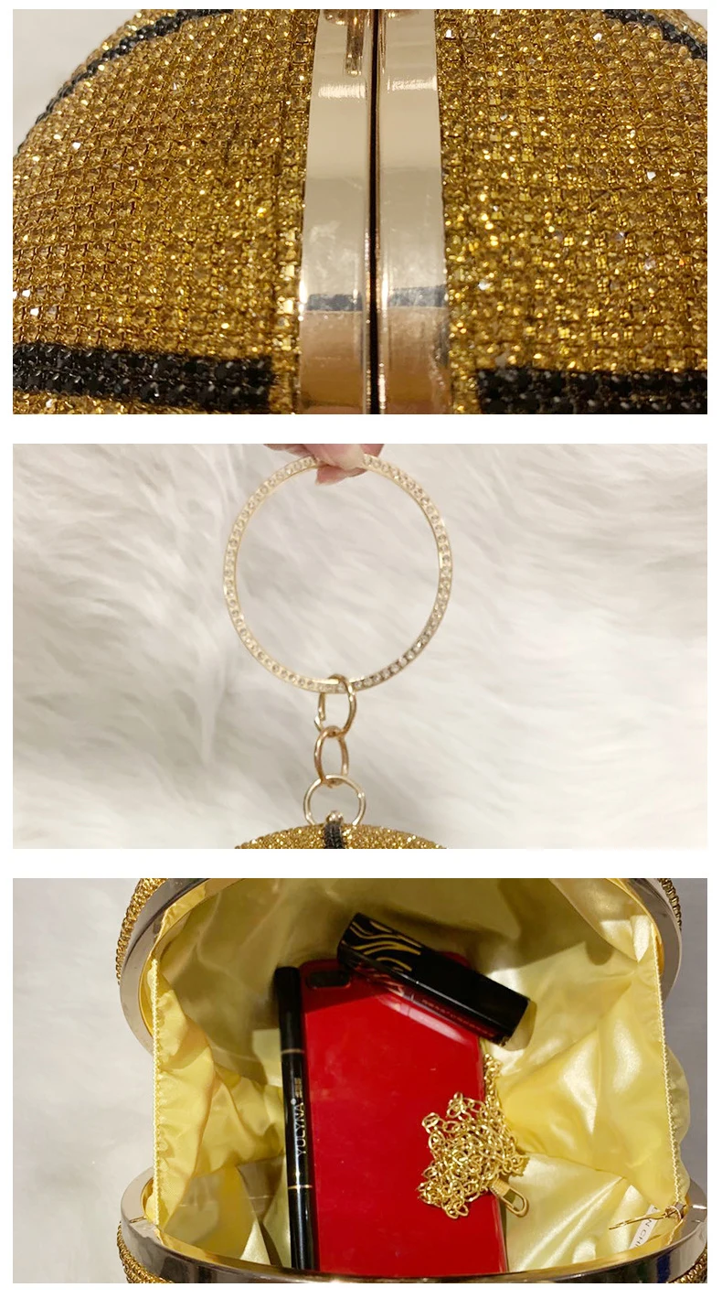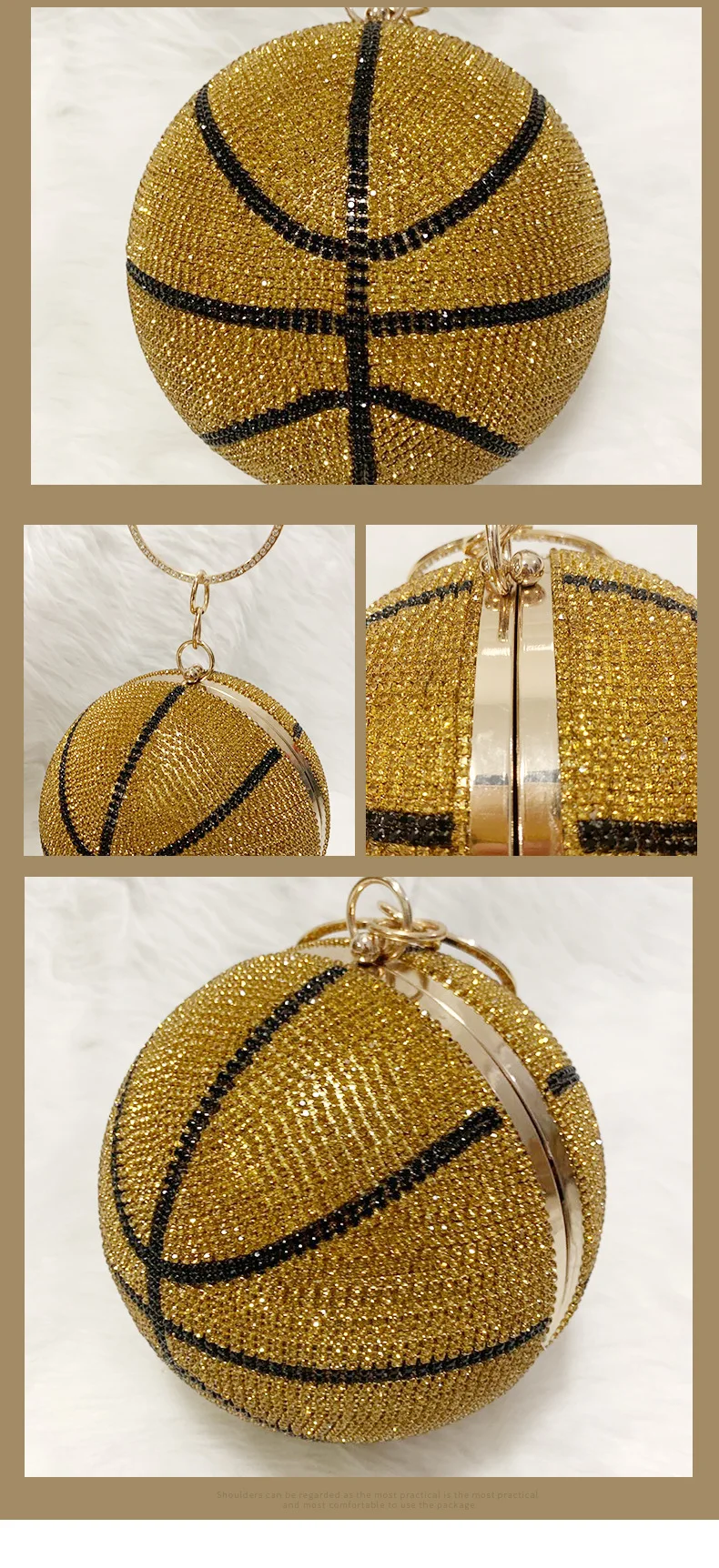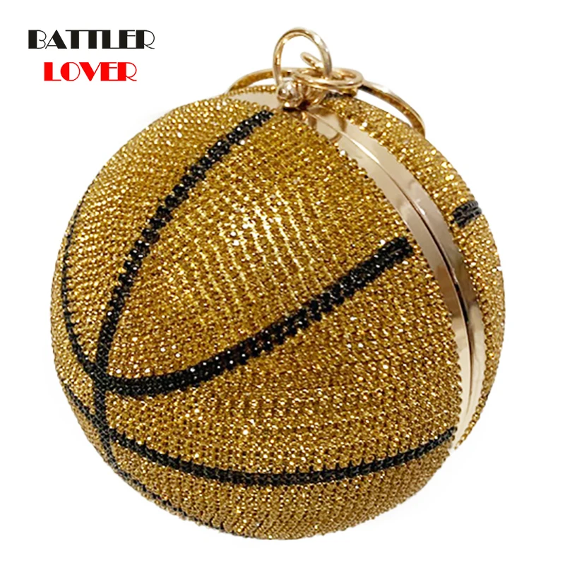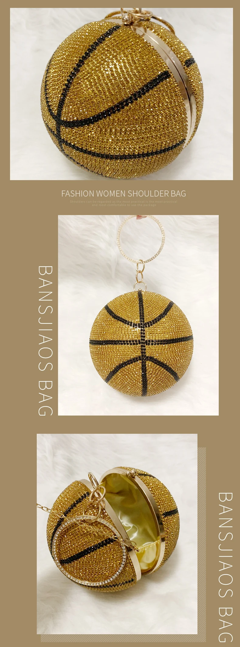 Luxury Basketball Diamond Ball Design Women Party Purses and Handbag Female Shoulder Chain Clutch Totes Wedding Dinner Flaps