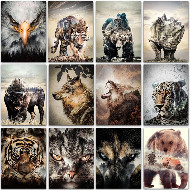 5D алмаз Краски ing комплект Краски животные, тигр, Лев волк лиса О...