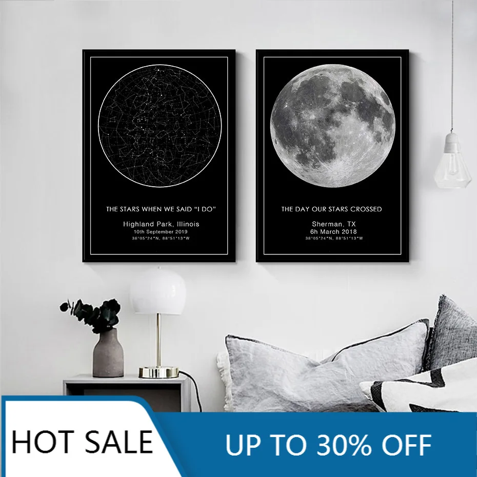 Настенный постер на заказ с изображением звездной карты и ночной детской комнаты, свадебный подарок, созвездия, Рождественский домашний декор для спальни