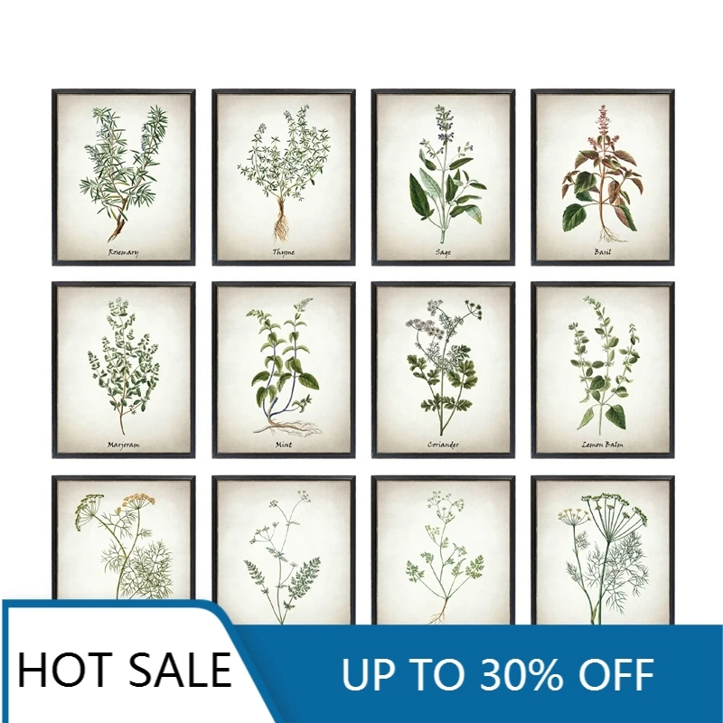 Травяная живопись на холсте, винтажные травяные иллюстрации, постеры и принты, кулинарные травы, ботаническая кухня, украшение стены для дома
