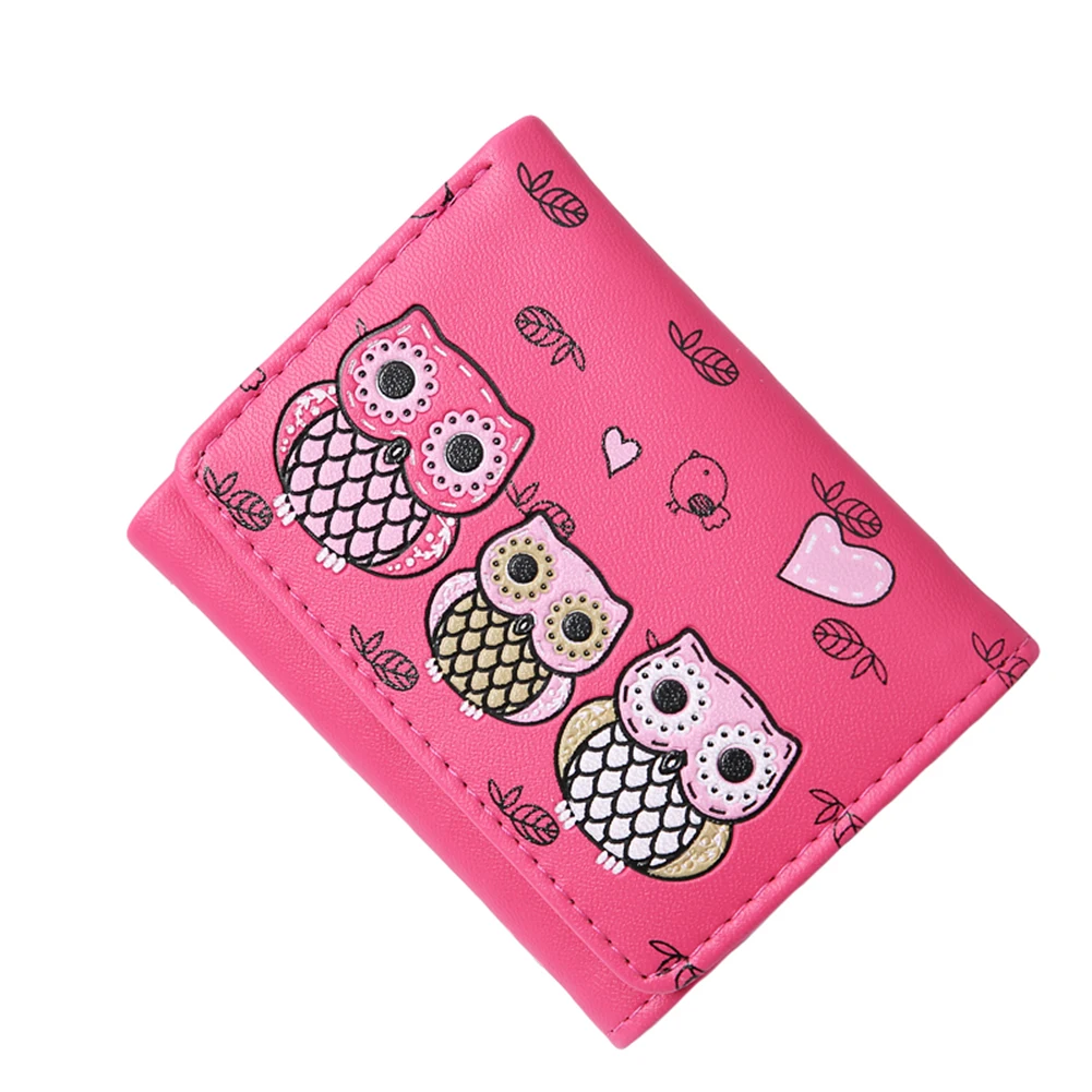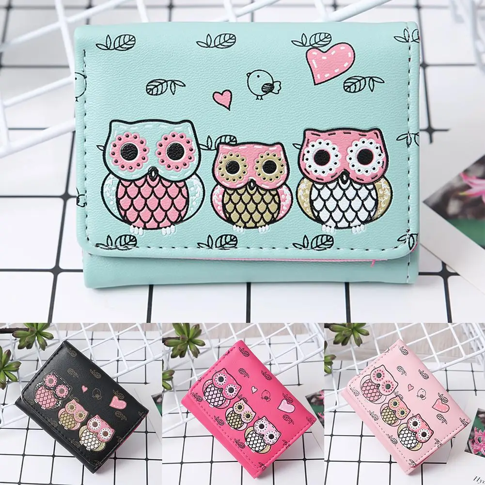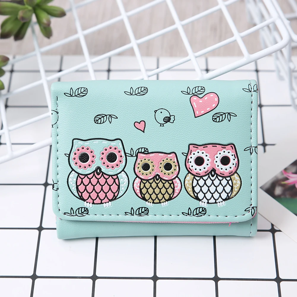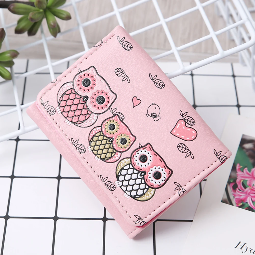 Мини-кошелек тройного сложения из искусственной кожи с рисунком совы для женщин и девочек, кошелек для монет