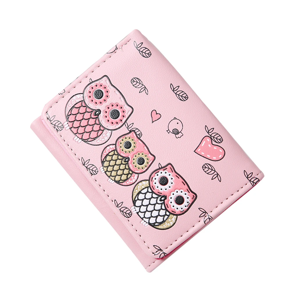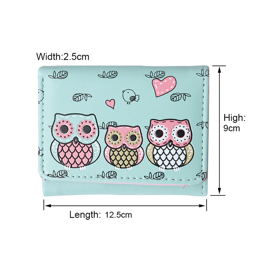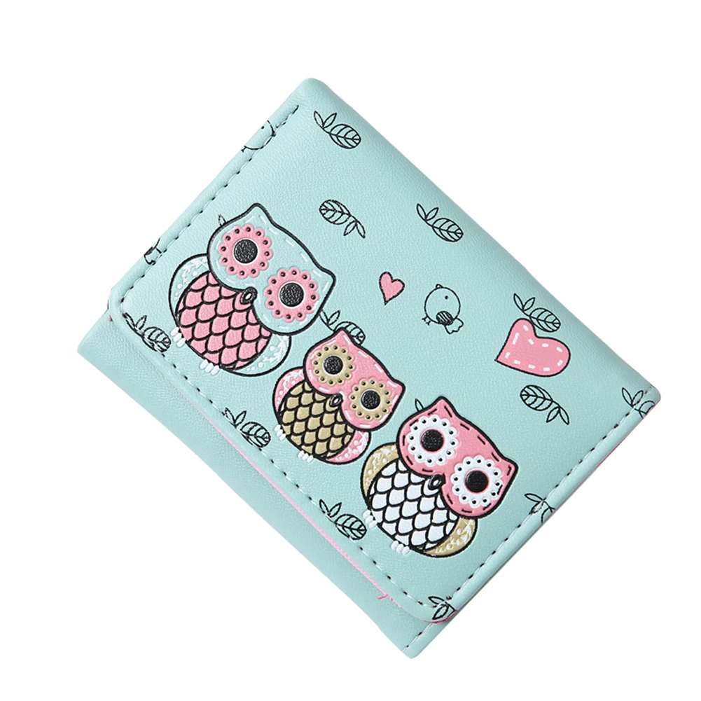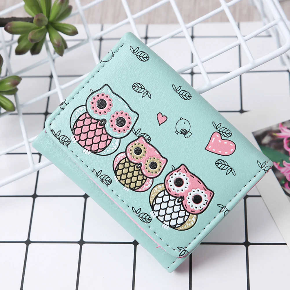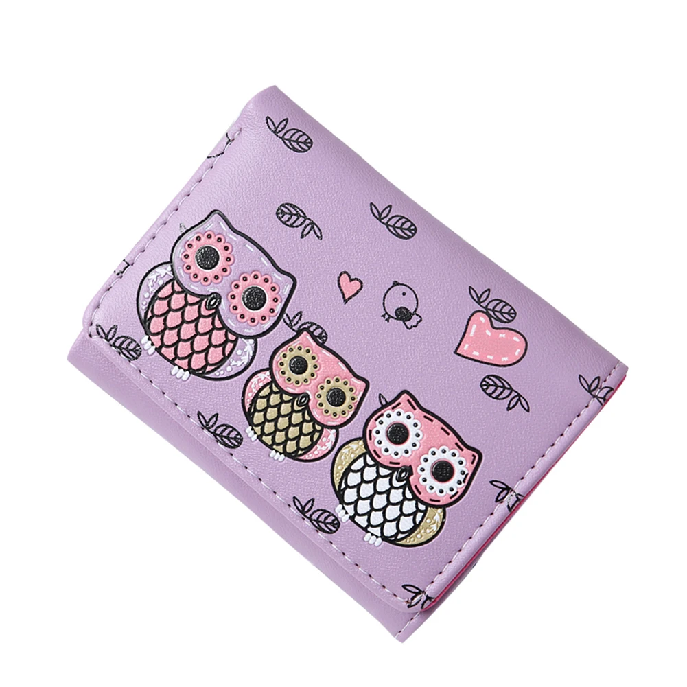 Мини-кошелек тройного сложения из искусственной кожи с рисунком совы для женщин и девочек, кошелек для монет