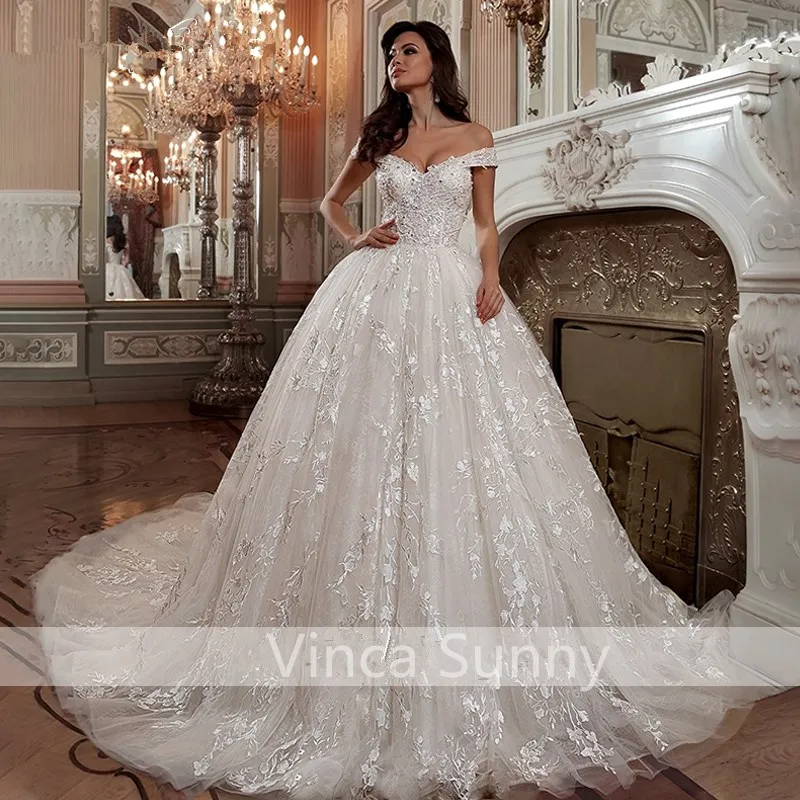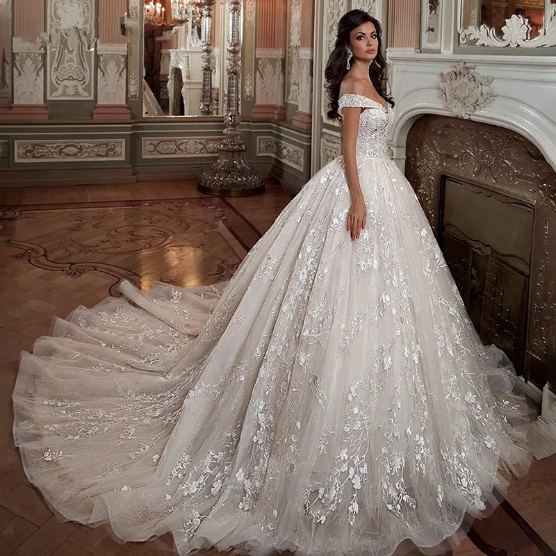 Роскошное бальное платье, свадебное платье 2022, романтическое милое платье с открытыми плечами, аппликацией и шнуровкой сзади, свадебное платье принцессы, свадебное платье