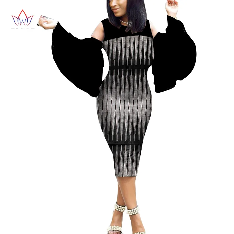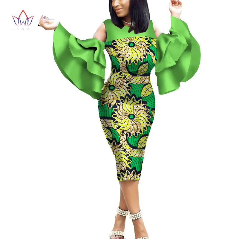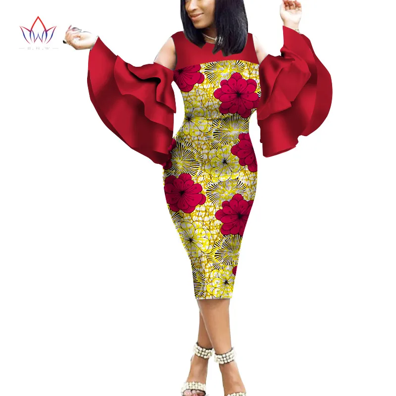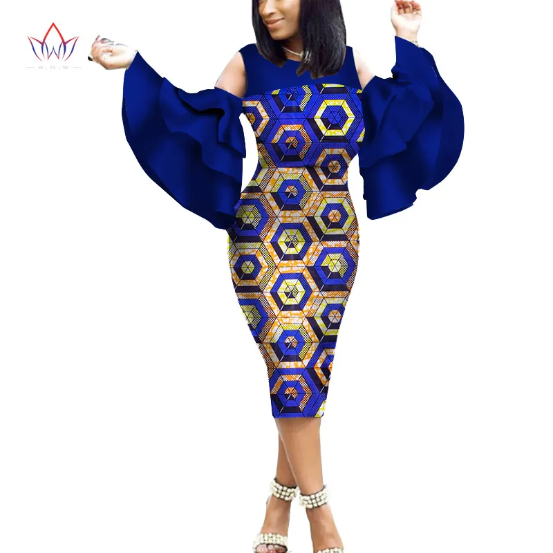Африканский Анкара хлопчатобумажные платья с принтом для женщин BINTAREALWAX расклешенные рукава, высота до середины голени, Длина платье женские узкие вечерние платье WY2056