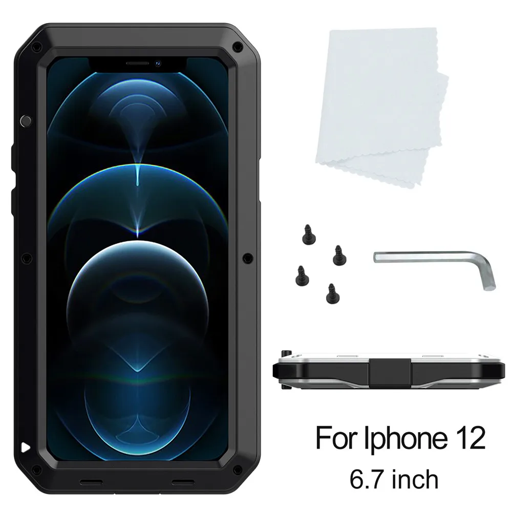 Противоударный чехол для iPhone 13 12 mini Heavy Duty Armor, металлические Чехлы для iPhone 12 11 13 Pro Max 8 7 Plus 6s, уличные водонепроницаемые чехлы из закаленного стекла