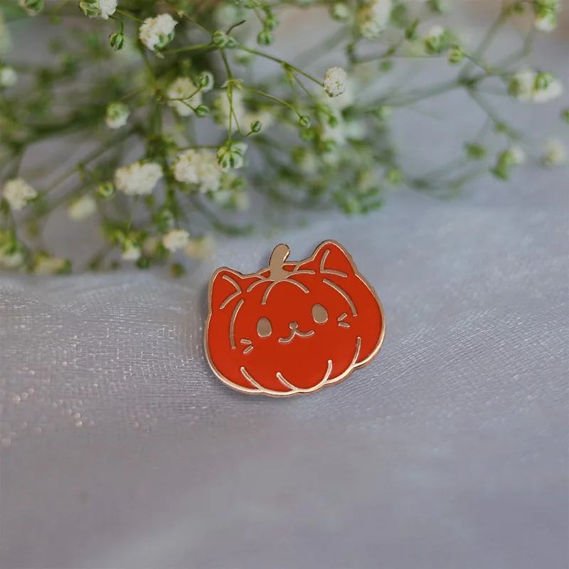Эмалированная булавка в виде тыквы, коллекция, брошь в виде котенка...