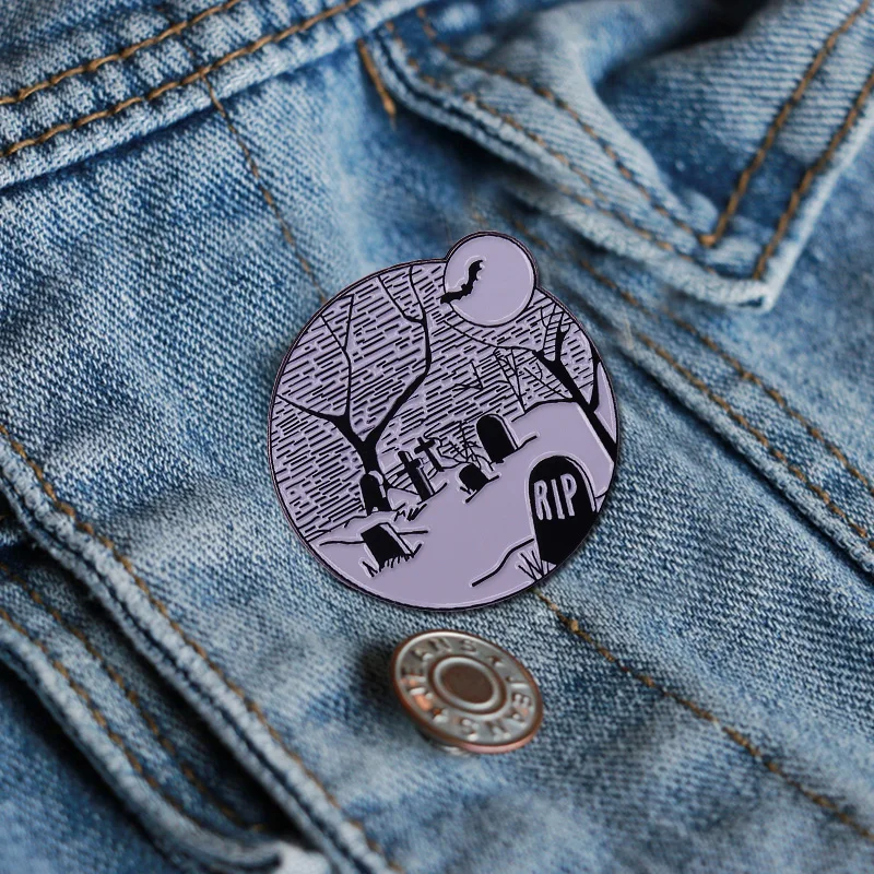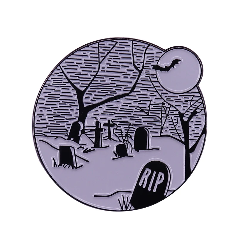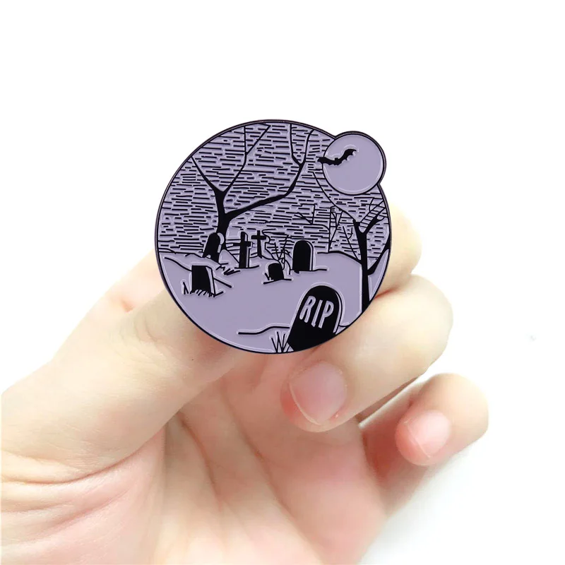 Эмалированная брошь в форме кладбища на Хэллоуин