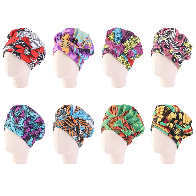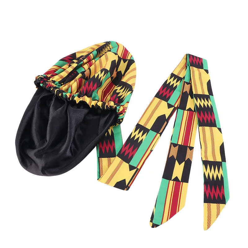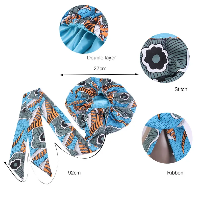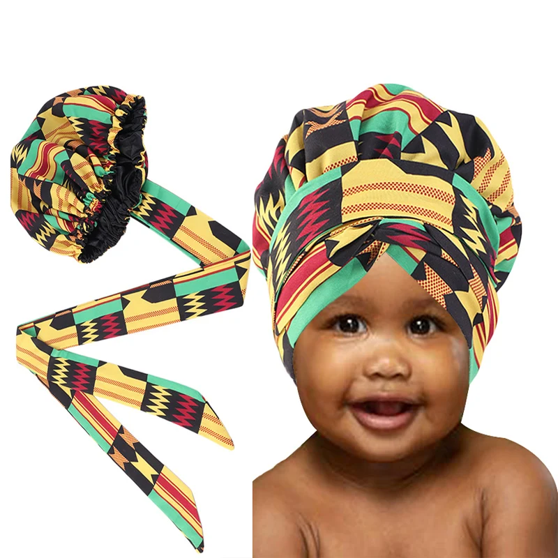 Новые детские шапки-тюрбаны для девочек, женские очень большие шапки с атласной подкладкой, головной убор из Африканской Анкары с длинной лентой, головной убор из Анкары, головной убор