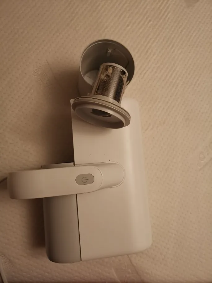 Девайс заслуживает внимания. Из 6 летнего матраса 180*220 см извлёк приличный объём мелкодисперсной пыли (см фото 1 и 2 - первую и вторую стороны матраса соответственно). Съёмный контейнер мыть можно, но не фильтр - он бумажный. Щётка для чистки фильтра не очень. Вилка китайская, положили нормальный переходник. УФ лампа включается автоматически. Шумит не очень. Мне нравится.
