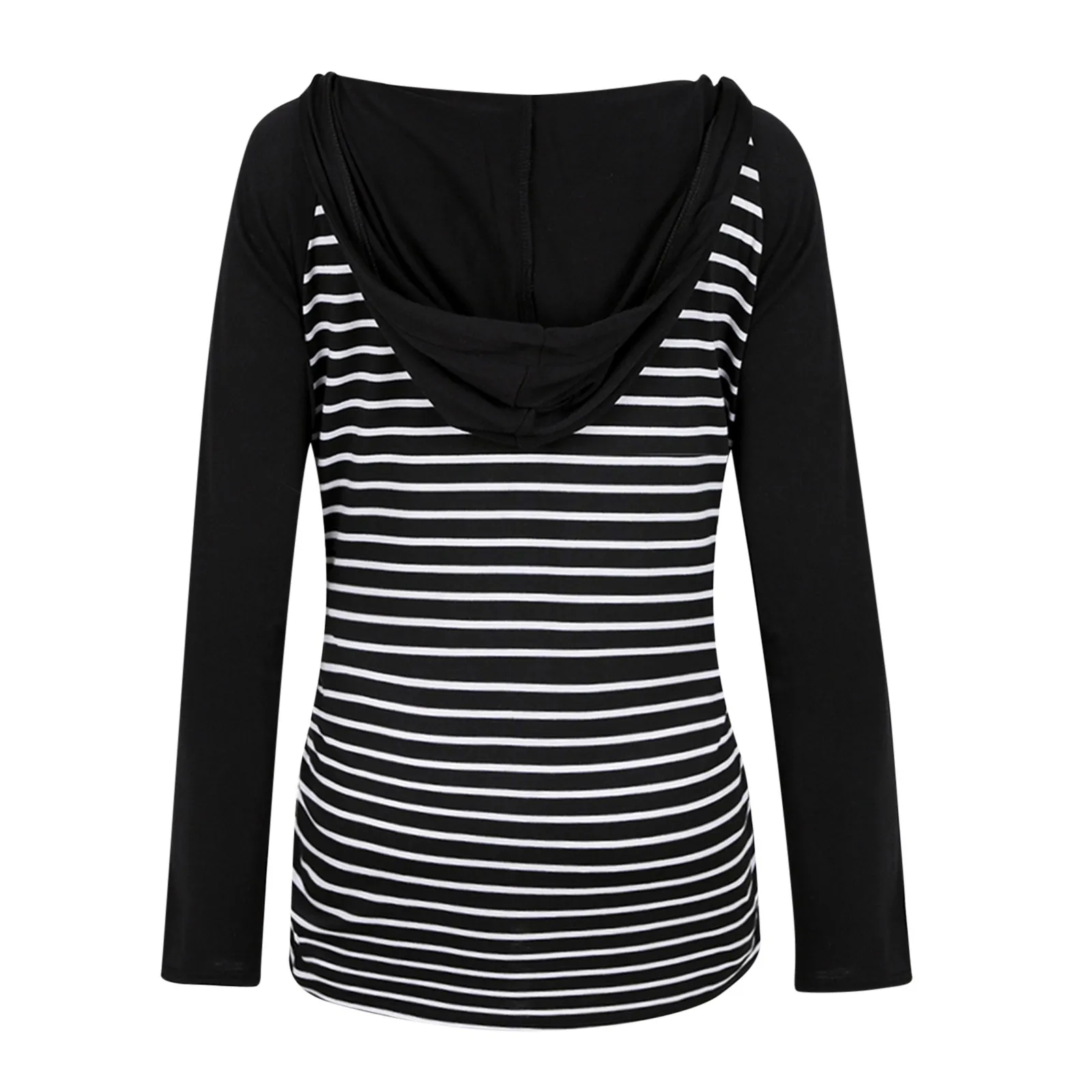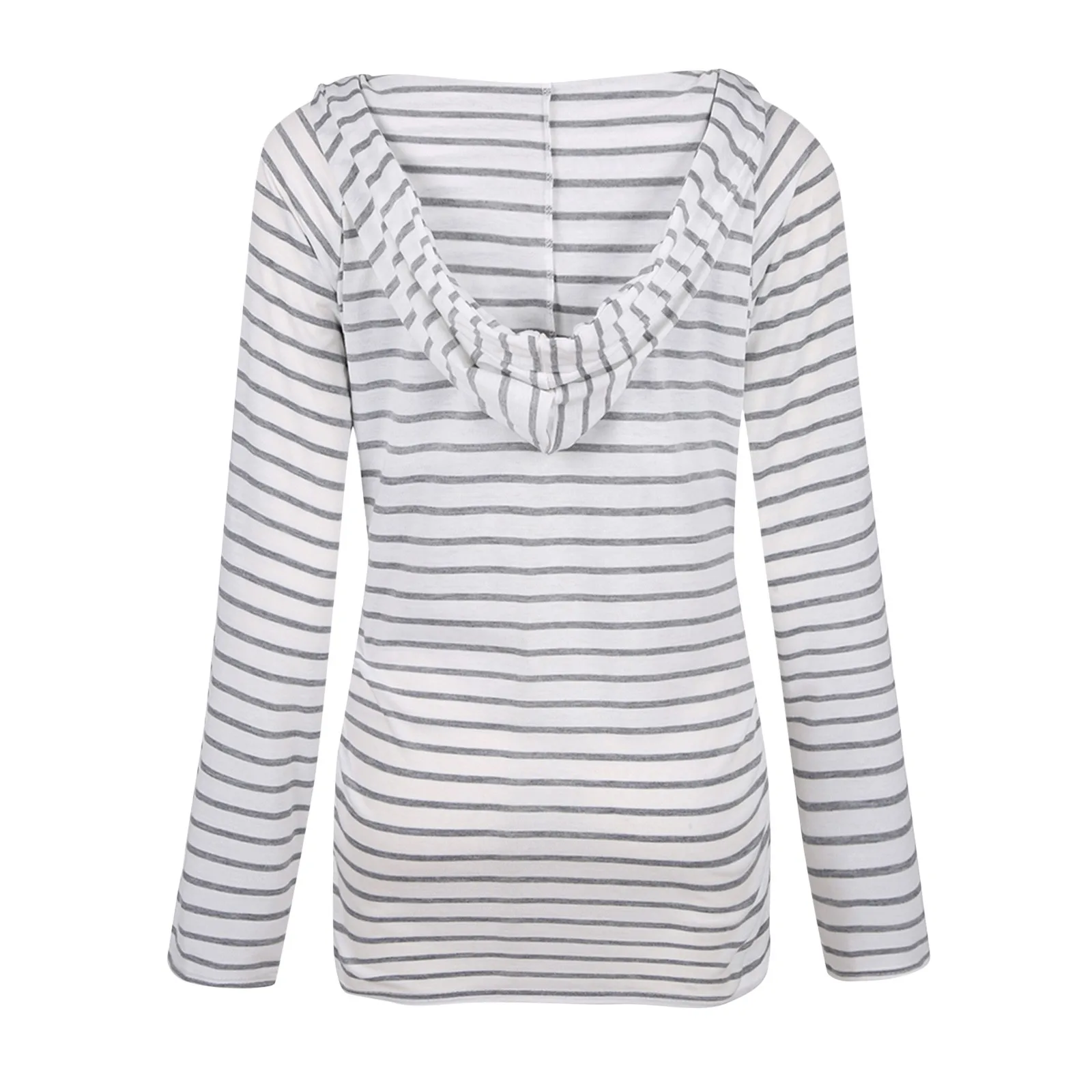 Для женщин беременности и родам полосатый принт с длинными рукавами худи с v-образным вырезом толстовки Топ