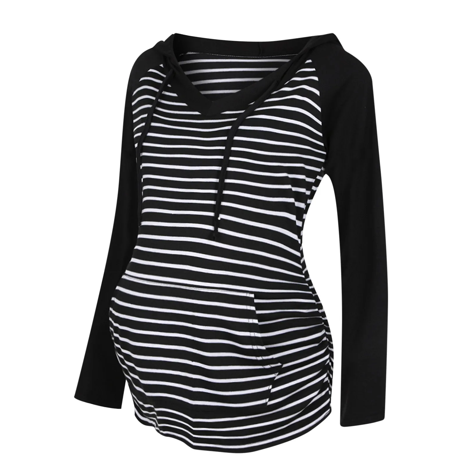 Свитшот для беременных женщин с длинными рукавами свитер с капюшоном для беременных с длинными рукавами и принтом в полоску худи с v-образным вырезом толстовки Топ