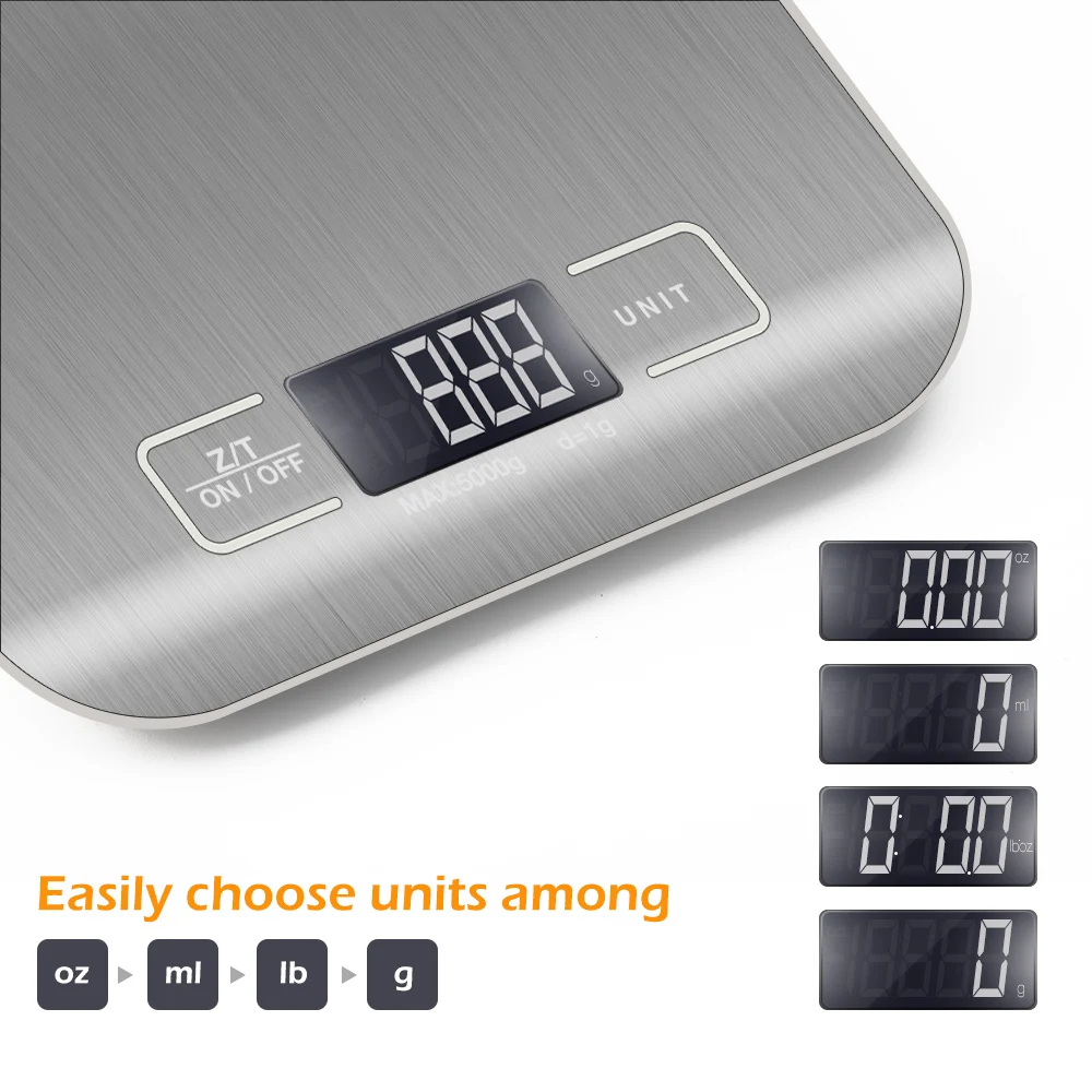 Характеристики: высококачественный и цифровой прецизионный balancelarge из нержавеющей стали platformlarge LCD оснащен высокоточным тензомерным датчиком, большим ЖК-дисплеем и отличной нагрузкой cellAuto нулевой сброс/мощность: 5 кг (11 фунтов) единицы измерения: g oz ml lbprecision: 1gError диапазон: + - 3 цвета: SilveKey с полной функцией: вкл/Выкл/тары/нулевер-нагрузка/низкая батарея indicatorLarge из нержавеющей взвешивания platformpowered от 1.5vtimes 2AAA батареи (не включены) Размер шкалы (Д * Ш * В): 180 мм * 140 мм * 18 мм размер лотка (Д * Ш) 180 мм * 140 мм Размер экрана (Д * Ш) 40 мм * 18 мм Вес: 300 г посылка в комплекте: цифровая кухонная коробка для розничной торговли на английском языке Примечание: есть один (синий цвет) или два слоя (первый-синий, второй-зеленый цвет) защитной пленки снаружи, вам нужно оторвать его перед использованием, он будет серебристым!
